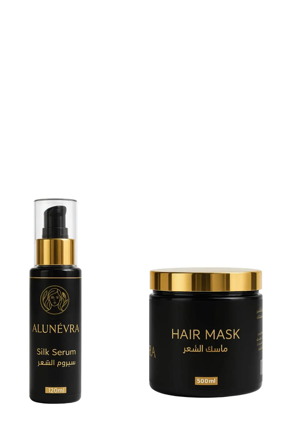 Restore and rejuvenate your hair with the Alunévra Hair Serum + Mask Set, a perfect duo for repairing damage, adding shine, and fighting frizz.